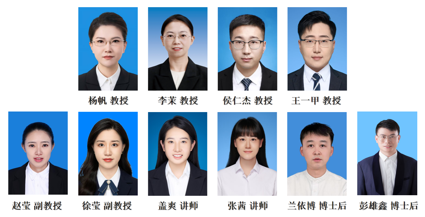“杨帆劳模创新工作室”拥有一支结构合理、实力雄厚的核心团队。工作室领衔人杨帆教授为博士生导师、国家级重大人才工程入选者,团队成员包括李茉教授(国家优秀青年基金获得者)、侯仁杰教授(国家优秀青年基金获得者)、王一甲教授(国家优秀青年基金(海外)获得者)等一批高层次人才。此外,团队还汇聚了赵莹副教授、徐莹副教授等骨干力量,以及盖爽讲师、张茜讲师、兰依博博士后、彭雄鑫博士后等青年才俊,形成了中青结合、梯队完善的创新研究队伍。