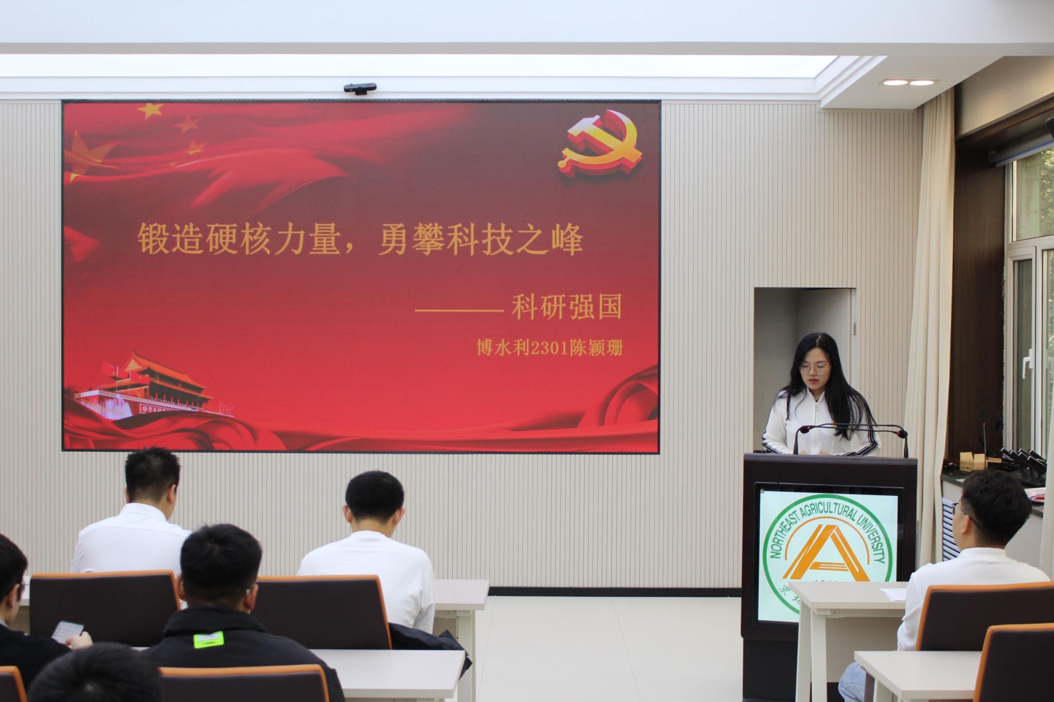 陈颖珊是2023级博士研究生,首批中科协青年人才托举工程博士生、2025年博士研究生国家奖学金获得者。她以“科研与强国使命”为题,分享了其对“科技兴国”战略的深刻理解。结合党的二十届四中全会后“十五五”规划对科技创新的战略布局,强调科技是国家强盛之基,创新是民族进步之魂,在当前国际形势与国内转型关键期,科技创新对于提升国家综合竞争力、实现高质量发展具有核心驱动作用。她表示,作为一名农业水土工程领域的研究者,将继续深入探索水-能-粮协调调控、粮食安全保障及水质污染防治的前沿技术,将论文写在祖国大地上,把科研成果应用于强国事业,践行青年党员的报国初心。