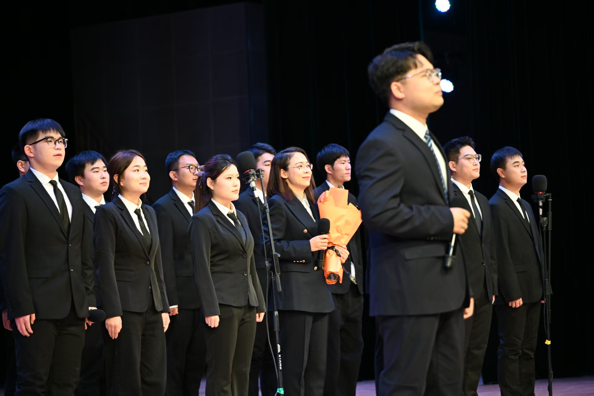 学院教师孙楠为晚会带来别样惊喜。她首先以视频寄语2025级新生,分享深耕科研的宝贵心得,勉励同学们在水利事业的广阔天地中脚踏实地、持续探索;随后与团队成员登台合唱,以歌声传递温暖与力量。这一系列精彩呈现,将现场气氛推向高潮,生动诠释了“水利人、科研志、报国情”的精神内核与代代传承的使命担当。