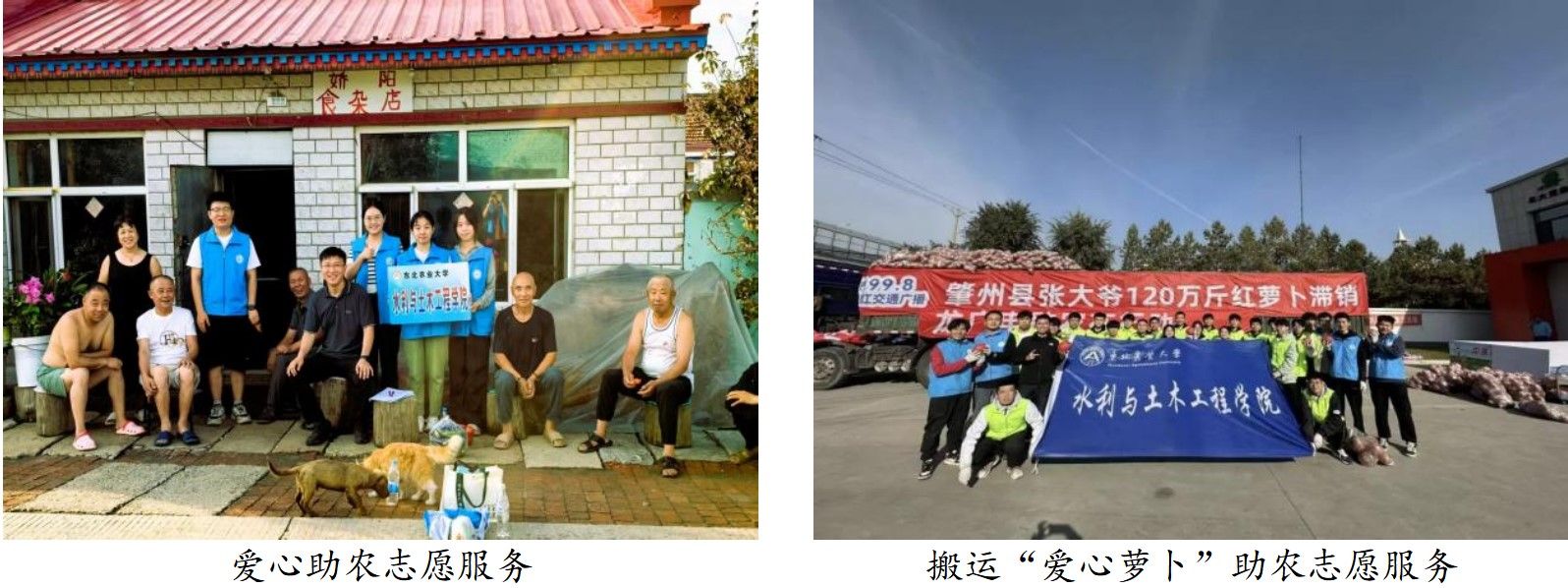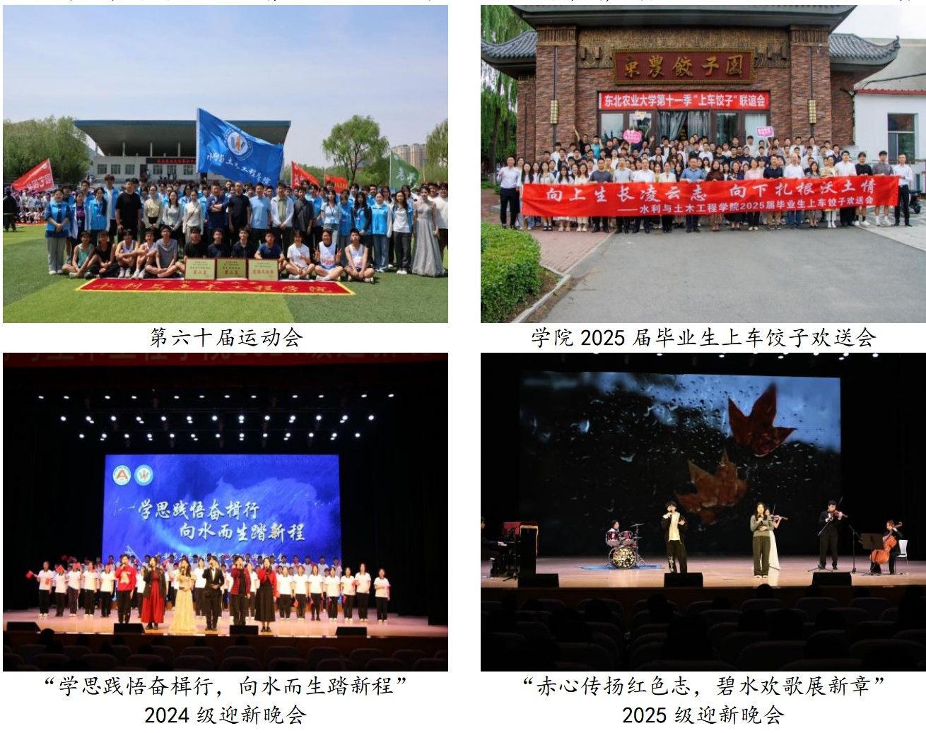 第二课堂活力迸发,综合素质全面提升。充分发挥共青团党的助手和后备军作用,学院团委连续五年获评校级“五四红旗团委”,指导学生会获评“2024-2025学年度校级先进学生会”,水利英语晨读社团获评“2022-2023学年度校级十佳社团”,累计开展主题团日、知识竞赛、文体活动超1000项,参与学生超6万人次,“水科学”沙龙品牌活动举办40余期。志愿服务注册率达85.3%,累计开展“爱心助农”、“飞鹤支教”、社区服务等活动300余项,志愿时长超2万小时,“爱心萝卜”助农活动获省级媒体直播报道。年均举办迎新晚会、运动会等文化活动覆盖2000人次,在校运会、羽毛球、乒乓球等赛事中屡获团体冠军。
