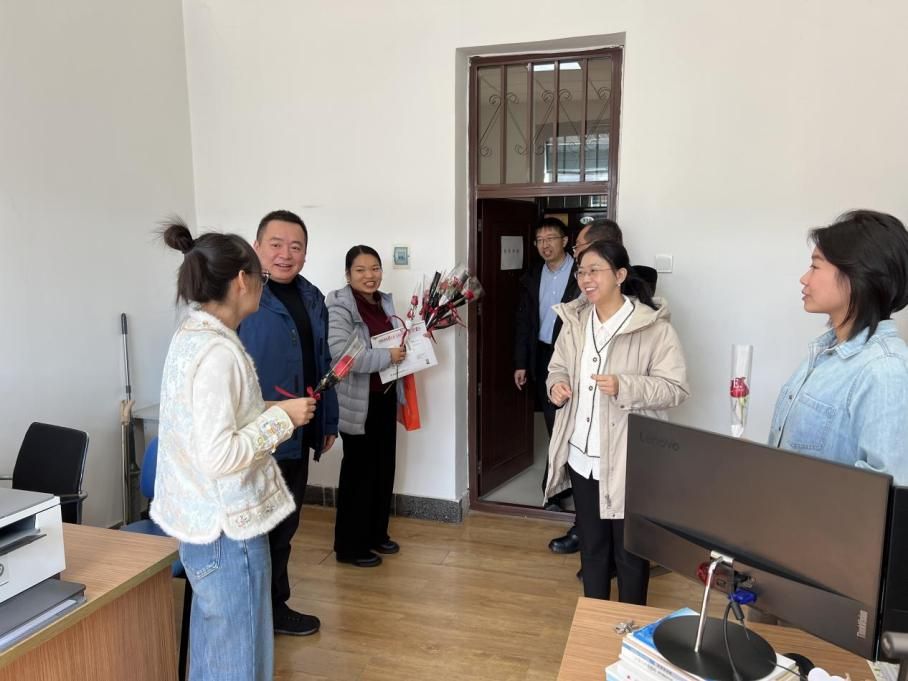 走访过程中,学院领导班子深入各教研室和办公室,为女教师送上鲜花,与她们亲切交谈,倾听育人感悟,关切询问工作与生活情况,详细了解发展诉求。院领导充分肯定女教职工为学院发展作出的突出贡献,高度赞扬她们爱岗敬业、无私奉献的精神,勉励大家继续在立德树人、学术创新和管理服务中再创佳绩,传递了学院的深切关怀与温暖祝福。