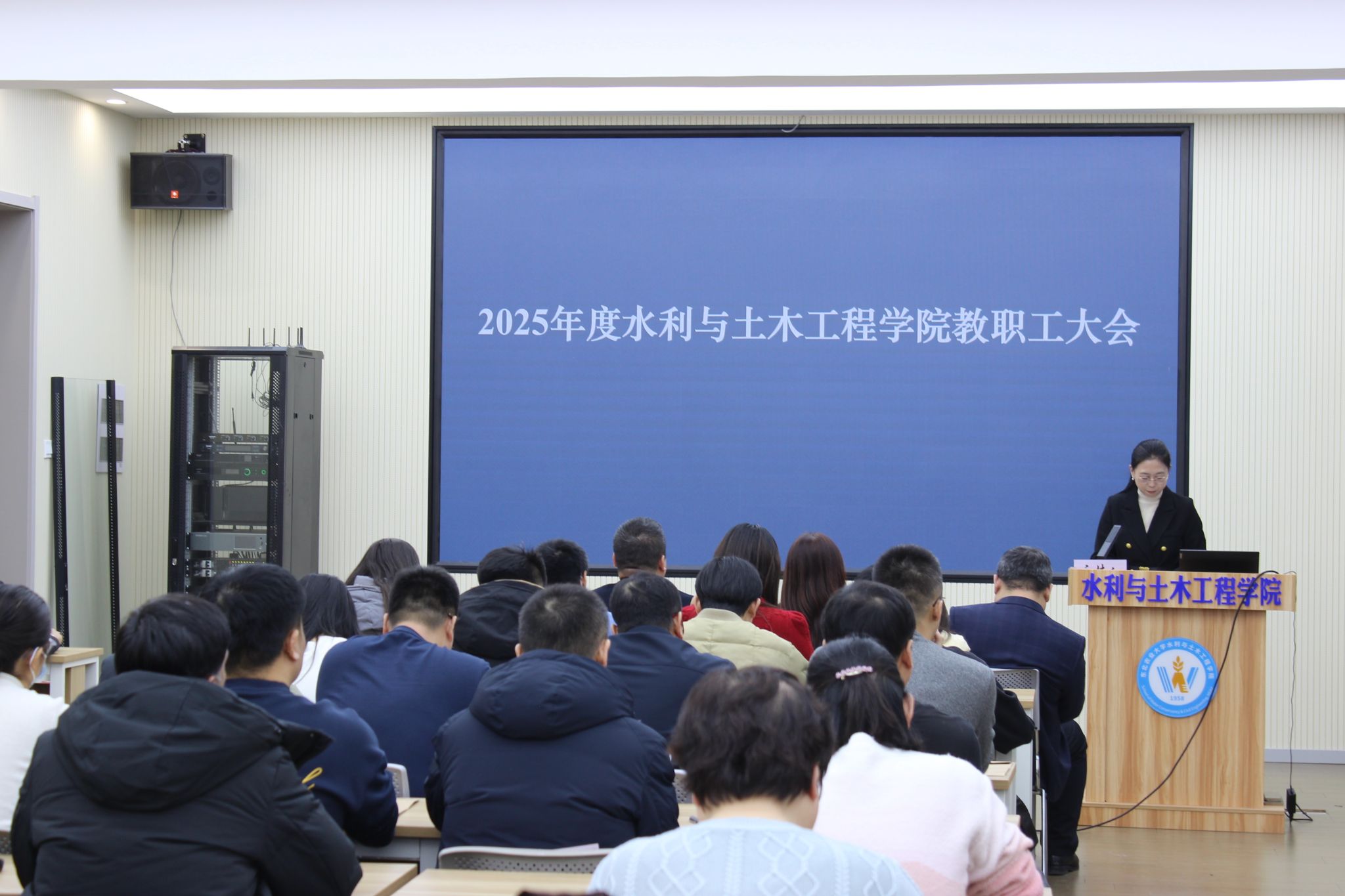 1月7日下午,我院2025年度教职工大会在水利楼308会议室召开,学院领导班子、全体教职工参加会议。会议由学院党委副书记、工会主席王国军主持。